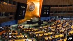 اقوام متحدہ کی جنرل اسمبلی میں بدھ کو پیش ہونے والے قرار داد کی 143 ممالک نے حمایت ، پانچ نے مخالفت میں ووٹ دیا جبکہ پاکستان ،بھارت ، جنوبی افریقہ اور چین ان 35 ممالک میں شامل ہیں جنہوں نے قرارداد پر ہونے والی ووٹنگ میں حصہ نہیں لیا ۔
