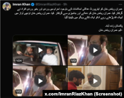 عمران ریاض خان کے سوشل میڈیا اکاؤنٹ سے چند ویڈیوز شیئر کی گئی ہیں جن میں وہ احرام میں نظر آ رہے ہیں اور انہیں لاہور کے علامہ اقبال انٹرنیشنل ایئرپورٹ میں اندر داخل ہونے سے قبل روک لیا گیا ہے۔