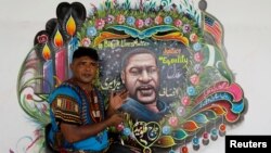 گزشتہ ماہ سیاہ فام امریکی شہری جارج فلائیڈ کی ہلاکت کے بعد جہاں نسل پرستی کے خلاف مظاہروں کا سلسلہ جاری ہے وہیں دنیا کے مختلف ملکوں کے مصور اپنے فن کے ذریعے اُنہیں خراج عقیدت پیش کر رہے ہیں۔