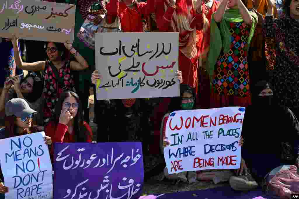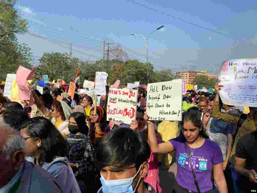 دنیا بھر میں آٹھ مارچ کو عالمی یومِ خواتین منایا جاتا ہے۔ پاکستان میں بھی اس دن کی مناسبت سے مختلف شہروں میں ریلیاں نکالی جاتی ہیں اور عورت مارچ کا انعقاد ہوتا ہے۔ اس سال اسلام آباد اور لاہور میں ہونے والے عورت مارچ میں شرکا نے کس طرح کے بینرز اور پوسٹرز اٹھا رکھے تھے؟ دیکھیے اس پکچر گیلری میں۔
