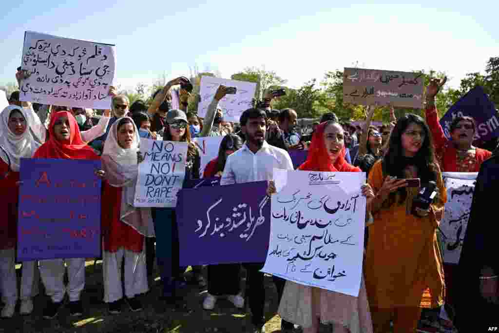 دنیا بھر میں آٹھ مارچ کو عالمی یومِ خواتین منایا جاتا ہے۔ پاکستان میں بھی اس دن کی مناسبت سے مختلف شہروں میں ریلیاں نکالی جاتی ہیں اور عورت مارچ کا انعقاد ہوتا ہے۔ اس سال اسلام آباد اور لاہور میں ہونے والے عورت مارچ میں شرکا نے کس طرح کے بینرز اور پوسٹرز اٹھا رکھے تھے؟ دیکھیے اس پکچر گیلری میں۔