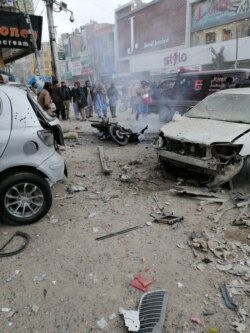 بموں کو ناکارہ بنانے والے سول ڈیفنس حکام نے وی او اے کو بتایا کہ دھماکے میں آٹھ کلو سے زیادہ دھماکہ خیز مواد استعمال کیا گیا تھا۔