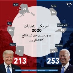 اس وقت ان چھ ریاستوں میں ڈاک کے ذریعے ڈالے جانے والے ووٹوں کی گنتی کی جا رہی ہے جن میں بعض رپورٹس اور تجزیہ کاروں کے مطابق جو بائیڈن کے ووٹوں کا تناسب زیادہ ہے۔