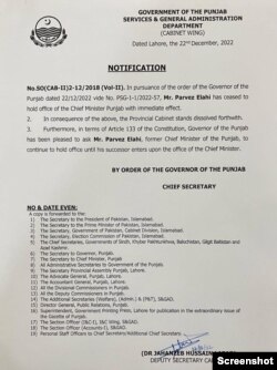 نوٹیفکیشن میں کہا گیا ہے کہ پرویز الہٰی نئے وزیراعلیٰ کے انتخاب تک کام جاری رکھیں گے۔