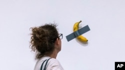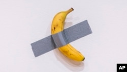 ویب ڈیسک — امریکہ میں ایک کیلے کی قیمت ایک ڈالر سے بھی کم ہے اور پاکستان میں تو ایک ڈالر کی مالیت میں ایک سے دو درجن تک کیلے خریدے جاسکتے ہیں۔ لیکن امریکہ میں ڈکٹ ٹیپ سے دیوار پر چپکائے گئے کیلے کی قیمت آپ کے خیال میں کیا ہونی چاہیے؟