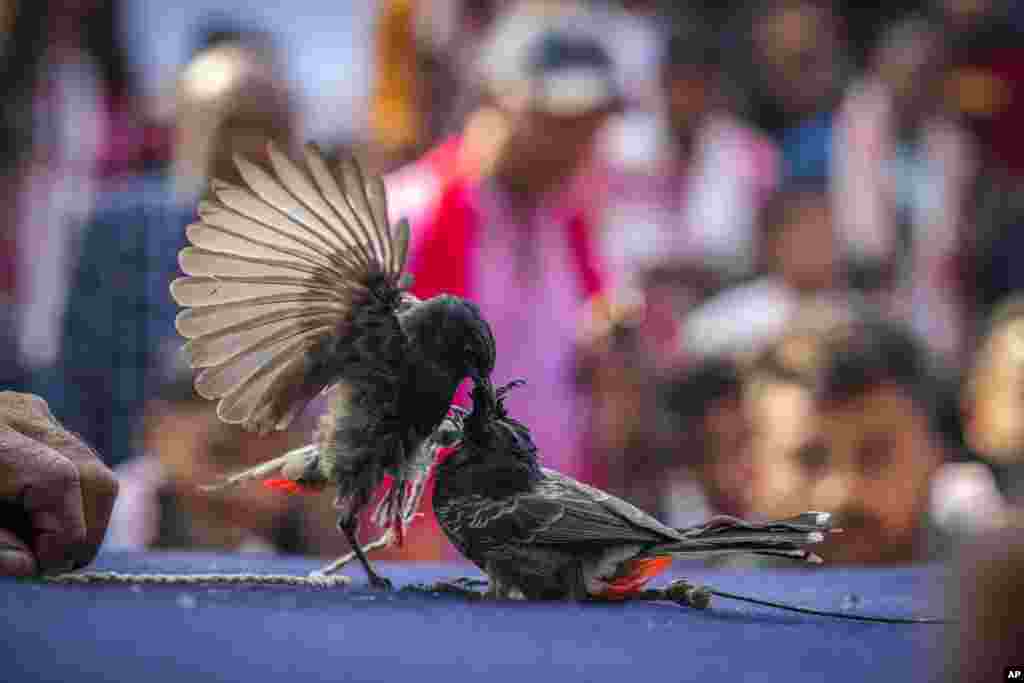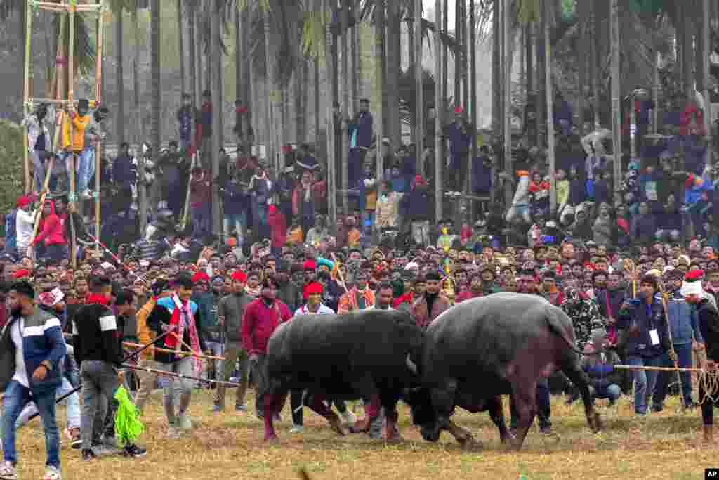 بھارت کی ریاست آسام میں نو برس کی پابندی کے بعد بھینسوں اور بلبل کی لڑائی کا مقابلہ ایک بار پھر کرایا جا رہا ہے جس کو دیکھنے کے لیے لوگ ٹریکٹر ٹرالیوں اور ٹرکوں میں سوار ہو کر میلے کے مقام پر پہنچے۔ بھارت کی سپریم کورٹ نے 2014 میں اس طرح کے مقابلوں پر پابندی عائد کر دی تھی۔ گزشتہ برس ریاستی حکومت نے اس حوالے سے نئی قانون سازی کی ہے جس کے بعد اب ان مقابلوں میں قواعد مقرر کیے گئے ہیں جن کے تحت پرندوں اور جانوروں کی حفاظت لازم ہے۔ بلبل کے مقابلوں میں ہر فاتح کو تین ہزار روپے انعام دیا گیا۔ ان چھوٹے سے پرندوں کے مقابلے کے جج کا کہنا تھا کہ مقابلے کے دوران یہ پرندہ زخمی نہیں ہوتا بلکہ پانچ سے دس منٹ کے دوران کوئی ایک پرندہ تھک جاتا ہے۔ میلے میں بھینسوں کے مقابلے بھی کرائے گئے۔ جانوروں اور پرندوں کے حقوق کے لیے کام کرنے والے کارکنوں نے اس میلے کے دوبارہ انعقاد پر تنقید کی ہے۔