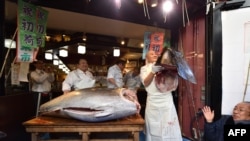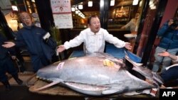 نہایت مہنگے داموں خریدی جانے والی اس مچھلی کی قسم 'بلیو فن ٹونا' کہلاتی ہے۔ اتوار کو نیلام ہونے والی اس مچھلی کا وزن 276 کلو گرام ہے۔