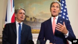 برطانوی وزیر خارجہ فلپ ہیمنڈ سے بات چیت کے بعد لندن میں گفتگو کرتے ہوئے، کیری نے روس اور ایران پر زور دیا کہ وہ اسد کو مذاکرات پر قائل کرنے کے لیے اپنا اثر و رسوخ استعمال کریں۔