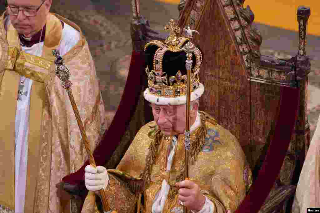 برطانیہ کے بادشاہ چارلس سوم کی تاج پوشی کردی گئی ہے۔ ہفتے کا دن برطانیہ کے شاہی خاندان کے لیے اہمیت کا حامل تھا کیوں کہ 70 برس بعد تاج پوشی کی یہ پہلی تقریب تھی۔ لندن کے ویسٹ منسٹر ایبی میں شاہ چارلس کو ہیروں اور قیمتی پھتروں سے جڑا ہار پہنایا گیا جس کے بعد ان کی اہلیہ کو بھی تاج پہنایا گیا جس کے بعد انہیں ملکہ کا خطاب مل گیا ہے۔ تاج پوشی کی تقریب کے بعد بادشاہ اور ملکہ شاہی بگھی میں سوار ہوکر بکنگھم پیلس گئے جہاں انہوں نے اپنے چاہنے والوں کو ہاتھ ہلا کر جواب دیا۔ اس دوران فلائی پاسٹ کا بھی مظاہرہ کیا گیا۔ تاج پوشی کی تصویری جھلکیاں دیکھیے اس پکچر گیلری میں۔