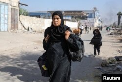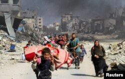 فلسطینی اپنے سامان کو ہاتھوں میں تھامے مختلف علاقوں میں منتقل ہو رہے ہیں۔