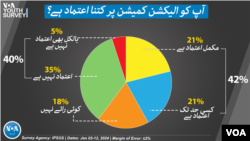 لیکن جب سروے کے ایک اور سوال میں نوجوانوں سے قومی اداروں پر اعتماد کے بارے میں پوچھا گیا تو الیکشن کمیشن پر عدم اعتماد کرنے والوں کی شرح (40 فی صد) سب سے زیادہ رہی۔