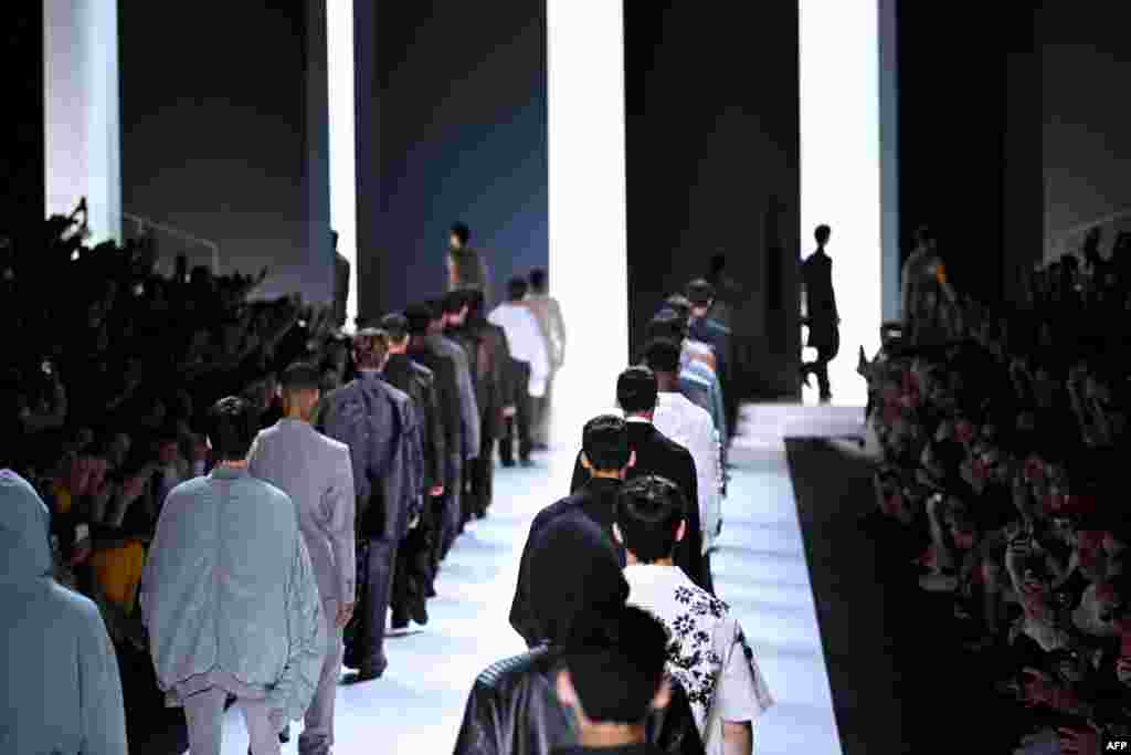 اٹلی کے شہر میلان میں پانچ روزہ فیشن ویک جاری ہے جس میں مختلف فیشن برانڈز 2024 کے موسمِ گرما و بہار کے لیے اپنی 'مینز' کلیکشن پیش کر رہے ہیں۔ جمعے سے شروع ہونے والا ایونٹ 20 جون تک جاری رہے گا۔ اس شو میں مرد ماڈلز ریمپ پر نت نئے ڈیزائن متعارف کرا رہے ہیں۔