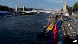بارش کے باعث ٹرائیتھلون ریس میں حصہ لینے والے ایتھلیٹس دریائے سین کا پانی آلودہ ہونے کی وجہ سے اتوار اور پیر کو پریکٹس نہیں کر سکے تھے۔