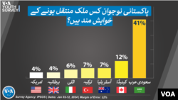بیرونِ ملک رہنے کے خواہش مند نوجوانوں کی دوسری ترجیح (12 فی صد) کینیڈا ہے۔ صرف چار فی صد نوجوان امریکہ منتقل ہونا چاہتے ہیں۔