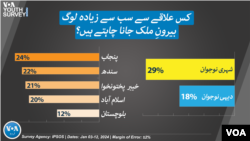 سروے کے مطابق شہری علاقوں سے 29 فی صد جب کہ دیہی علاقوں سے 18 فی صد نوجوان بیرونِ ملک منتقل ہونا چاہتے ہیں۔