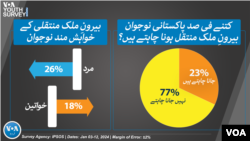 سروے میں 18 سے 34 برس کے نوجوانوں سے یہ سوال بھی کیا گیا تھا کہ کیا وہ بیرونِ ملک منتقل ہونا چاہتے ہیں؟