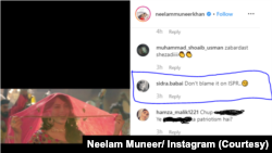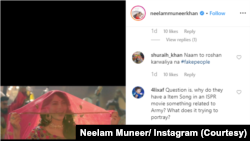مریم نامی انسٹاگرام صارف نے نیلم منیر کی پوسٹ پر جواب دیتے ہوئے کہا کہ اس آئٹم سانگ کی جو کوئی بھی وجہ ہو لیکن یہ تسلیم کرنا مشکل ہے کہ یہ گانا پاکستانی فلم میں ہے۔