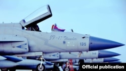 ’’جے ایف 17 تھنڈر لڑاکا طیارہ اب پاکستان میں بنایا جا رہا ہے۔۔۔۔ اسی طرح فریگیٹ کو بھی وقت گزرنے کے ساتھ ساتھ پاکستان خود بنائے گا۔‘‘
