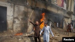 مظاہرین نے جمعہ کی شب صوبہ خیبر پختون خواہ کے ضلع مردان میں ایک چرچ کو بھی نذر آتش کر دیا تھا۔