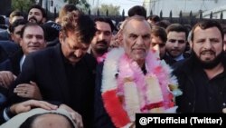 اسلام آباد میں سب جیل سے منگل کو ان کی رہائی کے وقت پی ٹی آئی کے کارکنان کی بڑی تعداد موجود تھی جنہوں نے ان پر گل پاشی بھی کی۔