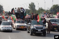 پاکستان تحریکِ انصاف کا ایک قافلہ ڈی چوک پر احتجاج کے آگے بڑھتے ہوئے فتح جنگ پہنچ گیا ہے۔