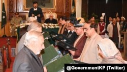 پاکستان کے صوبے خیبرپختونخوا میں نگران کابینہ نے بھی حلف اُٹھا لیا ہے تاہم پاکستان تحریکِ انصاف نے الزام عائد کیا ہے کہ نگران کابینہ میں وفاق میں حکمراں اتحاد سے روابط رکھنے والے افراد کو شامل کیا گیا ہے۔