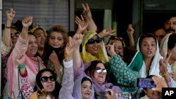 وہاں موجود کارکنان نے وزیرِ اعظم عمران خان کے نعرے لگائے اور اُن کی رہائی کا مطالبہ کیا۔