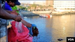 پل پر ہی کھڑے ایک ادھیڑ عمر شخص، شمیم اور ان کے بیٹے وقاص نے دودھ اور کھوئے کی بنی گولیاں سمندر میں ڈالنا شروع کیں تو نمائندے کے استفسار پر اُنھوں نے بتایا: ’کل محرم کی دس تاریخ تھی، جس میں نذر نیاز کی غرض سے دودھ اور کھوئے سے ملکر ’چم چم‘ بنانے کا ارادہ تھا۔ لیکن، کاریگر اناڑی تھا جس کی وجہ سے تقریباً تین ہزار روپے کا کھویا اور دودھ برباد ہوگیا۔ ہم نے سوچا ضائع کرنے سے بہتر ہے اللہ کی کسی دوسری مخلوق کے پیٹ میں چلا جائے ۔۔بس یہ سوچ کر ہی یہاں چلے آئے۔‘