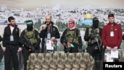 ہفتے کو غزہ کی پٹی کے علاقے خان یونس میں یرغمالوں کی رہائی کے لیے ایک تقریب منعقد کی گئی جس میں حماس اور فلسطینی عسکری تنظیم اسلامک جہاد کی جانب سے تین یرغمالوں کو ریڈ کراس کے حوالے کیا گیا۔