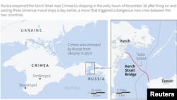 روسی حکام کا کہنا ہے کہ یوکرائنی کشتیاں بغیر اجازت اس کی حدود میں داخل ہوئی تھیں جس پر پہلے انہیں وارننگ دی گئی جس کے بعد ان پر فائرنگ کی گئی۔
