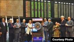 کراچی میں تعینات امریکی قونصل جنرل گریس شیلٹن نے جمعرات کو پاکستان اسٹاک ایکسچینج کا دورہ کیا اور گھنٹی بجا کر کاروباری سرگرمیوں کا آغاز کیا۔