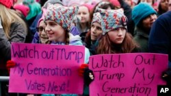 ان کا احتجاج صدر ٹرمپ کے ان بیانات اور تبصروں کے خلاف ہے جو وہ اپنی انتخابی مہم کے دوران خواتین اور تارکین وطن اور سماجی حقوق سے منسلک معاملات کے بارے میں کرتے رہے ہیں۔