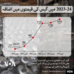 لیکن گیس کی قیمتوں میں اضافے کا سلسلہ پھر بھی نہیں تھما اور جنوری 2024 میں فی ایم ایم بی ٹی یو چارجز بڑھ کر 1761 روپے ہو گئے اور پھر مارچ 2024 میں بھی فی ایم ایم بی ٹی یو چارجز مزید بڑھا کر 1976 روپے کر دیے گئے۔