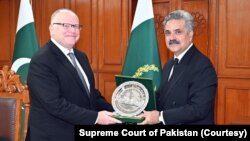 آئی ایم ایف کے وفد نے چیف جسٹس آف پاکستان سے منگل کو ملاقات کی تھی۔ آئی ایم ایف وفد کا مقصد پاکستان میں عدالتی نظام میں جاری اصلاحات سے واقفیت حاصل کرنا تھا: تجزیہ کار آئی ایم ایف سمجھتا ہے کہ پاکستان میں انصاف کی فراہمی پر سمجھوتا کیا جاتا ہے: سلمان شاہ گورننس کی کمزوریوں سے متعلق تحقیقات آئی ایم ایف کا مینڈیٹ نہیں: ڈاکٹر ندیم الحق ملاقات کے دوران بات چیت عدالتی اصلاحات، احتساب اور ججوں کے خلاف شکایات کے ازالے کے طریقہ کار پر مرکوز تھی: سپریم کورٹ کا بیان |
