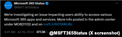 مائیکروسافٹ 365 نے سوشل پلیٹ فارم 'ایکس' (سابقہ ٹوئٹر) پر کہا ہے کہ متاثرہ ٹریفک کو متبادل سسٹمز پر ڈالنے کی کوشش کر رہے ہیں تاکہ پڑنے والے اثر کو کم کیا جا سکے۔