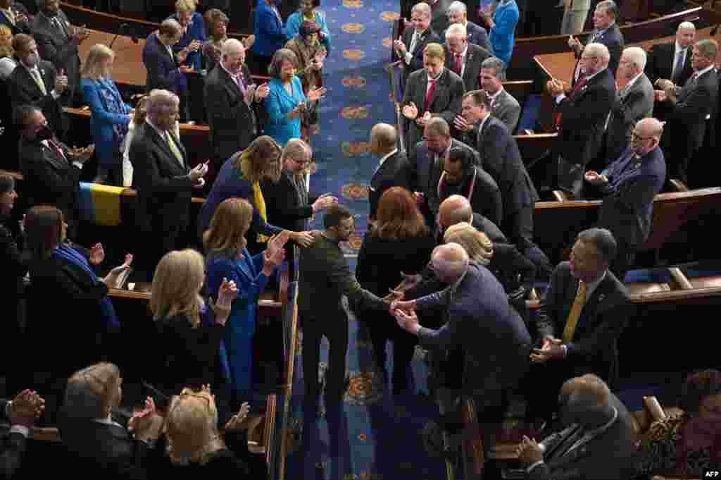یوکرین کے صدر ولودومیر زیلنسکی نے اپنا دورۂ واشنگٹن مکمل کرلیا ہے۔ روس کی جانب سے یوکرین پر جنگ مسلط کیے جانے کے بعد زیلنسکی کا یہ پہلا باقاعدہ غیر ملکی دورہ تھا۔ زیلنسکی کے بدھ کو وائٹ ہاؤس پہنچنے پر امریکہ کے صدر جو بائیڈن نے ان کا استقبال کیا اور اس موقع پر دونوں رہنماؤں نے ملاقات کے بعد مشترکہ پریس کانفرنس بھی کی۔ ولودومیر زیلنسکی نے امریکی کانگریس کے مشترکہ اجلاس سے خطاب بھی کیا۔ انہوں نے جنگ کے دوران فوجی ساز و سامان اور مالی امداد فراہم کرنے پر امریکہ کا شکریہ ادا کیا۔ زیلنسکی نے کہا کہ ''آپ کی رقم عطیہ نہیں بلکہ عالمی سیکیورٹی اور جمہوریت میں ایک سرمایہ کاری ہے جو ہم انتہائی ذمہ دارانہ طریقے سے سنبھالتے ہیں۔''